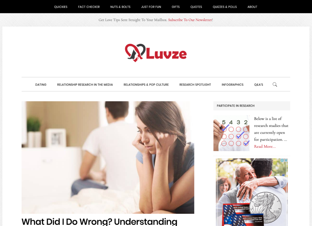 Luvze is a site for couples who want to take a scientific approach to their relationships to improve and strengthen them. There are lots of great articles on dating, relationship research in the media, and relationships and pop culture.