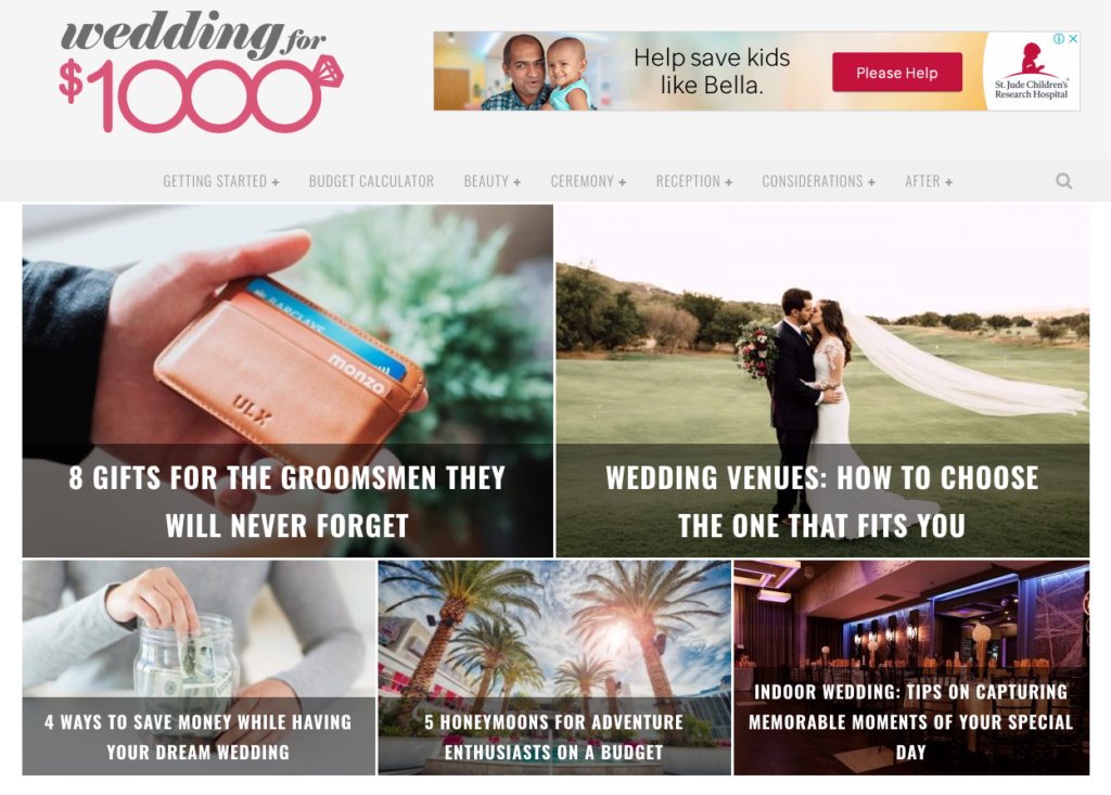 Budget weddings can be beautiful! That’s the philosophy behind Wedding for $1000, a site for couples and wedding planners who want tips and tricks on saving money while planning the big day.